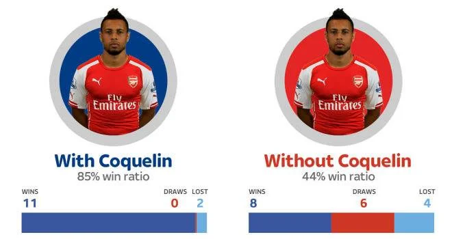 Arsenal have impressed in this second part of the season, winning 9 of their last ten games despite losing a handful of first team players to injury. This may be what has enabled them to accumulate so many points and maintain the consistency they’ve so often lacked in the past when the dog days of the season arrive. With the injuries to their main defensive midfielders, Arteta and Flamini, Arsene Wenger was forced to call back Francis Coquelin from his loan spell at Charlton Athletic, and he has proved to be a solid and consistent alternative. In fact, since Coquelin’s return, Arsenal have won 85% of the games in which he has started.